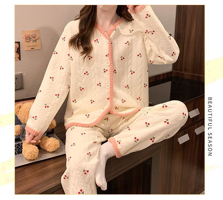 Air Cotton Sandwich Pajamas Sweet Small Cherry Homewear