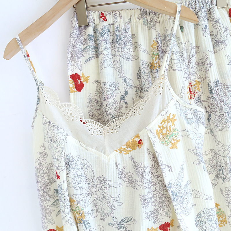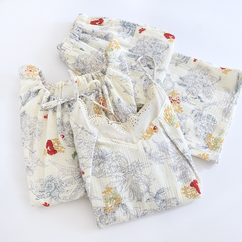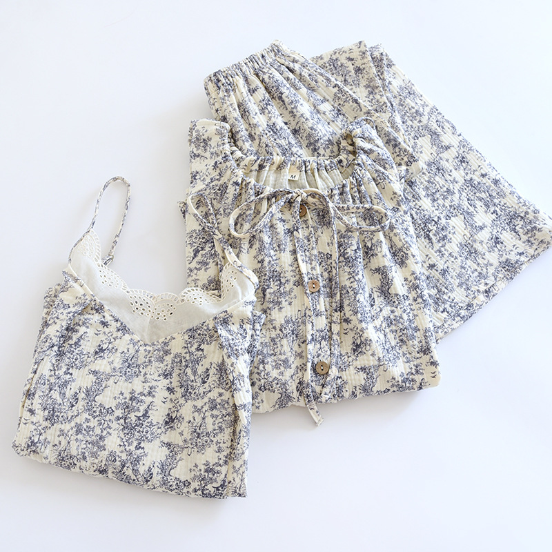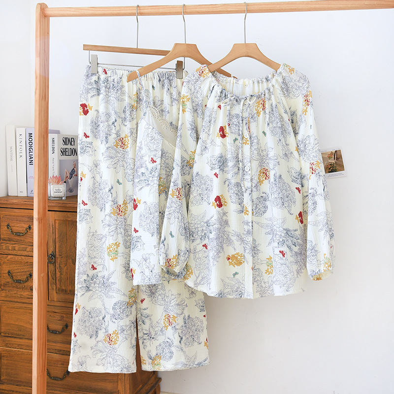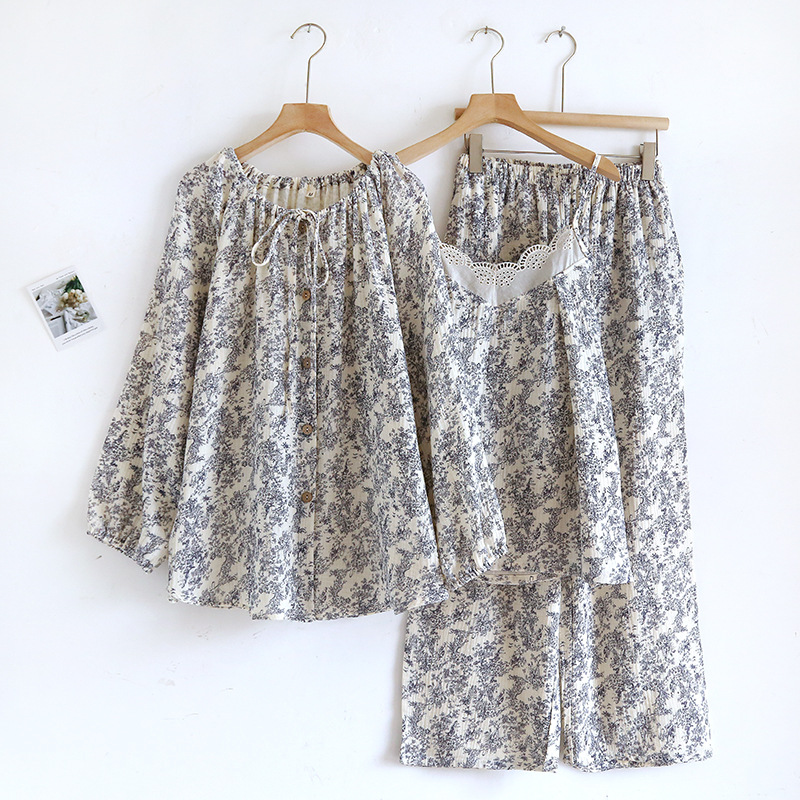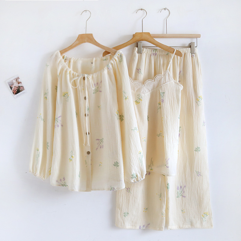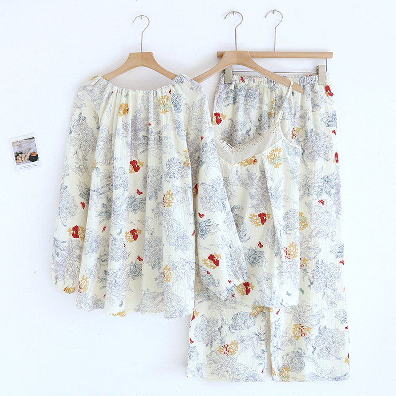 New Cotton Crepe Three-piece Pajamas Women's Homewear Suit