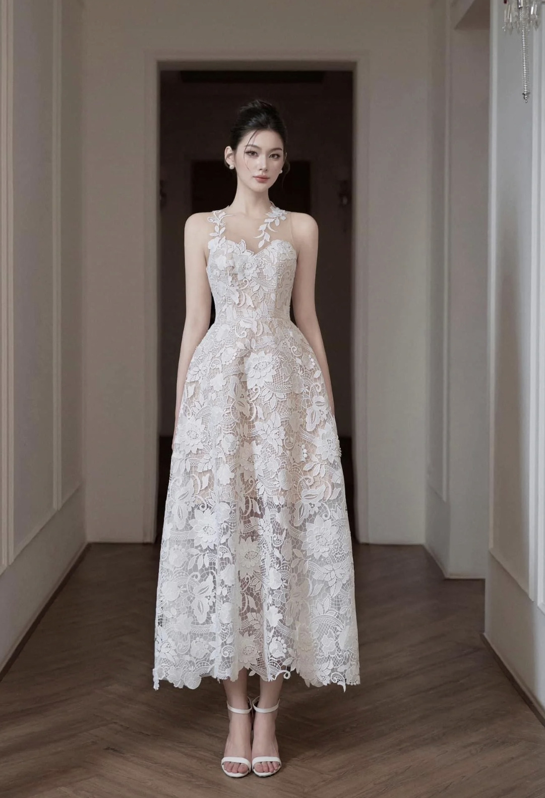 New Three-dimensional White Lace Dress Women