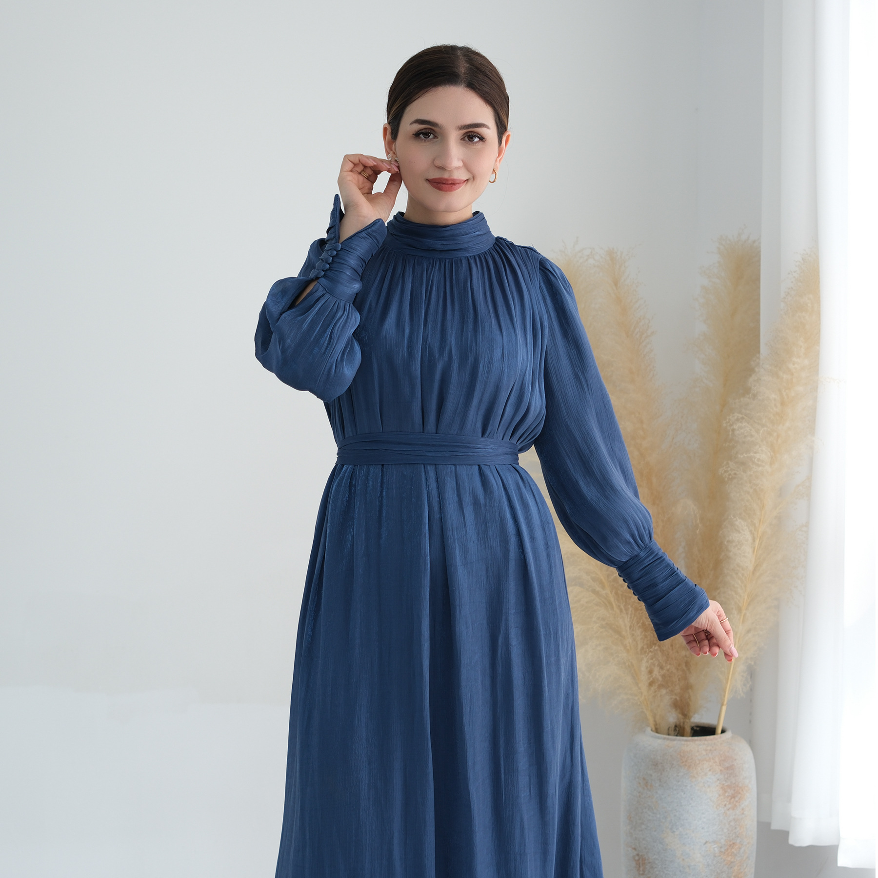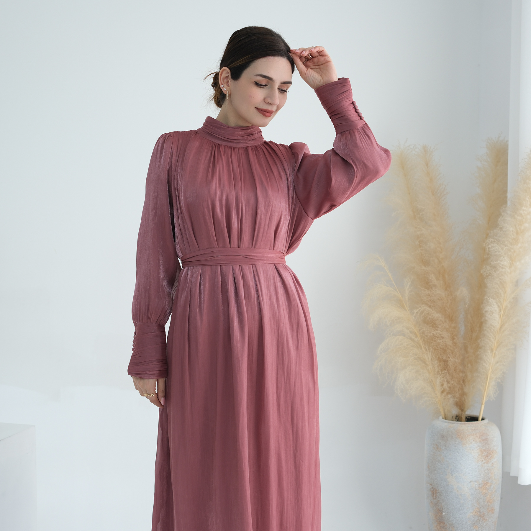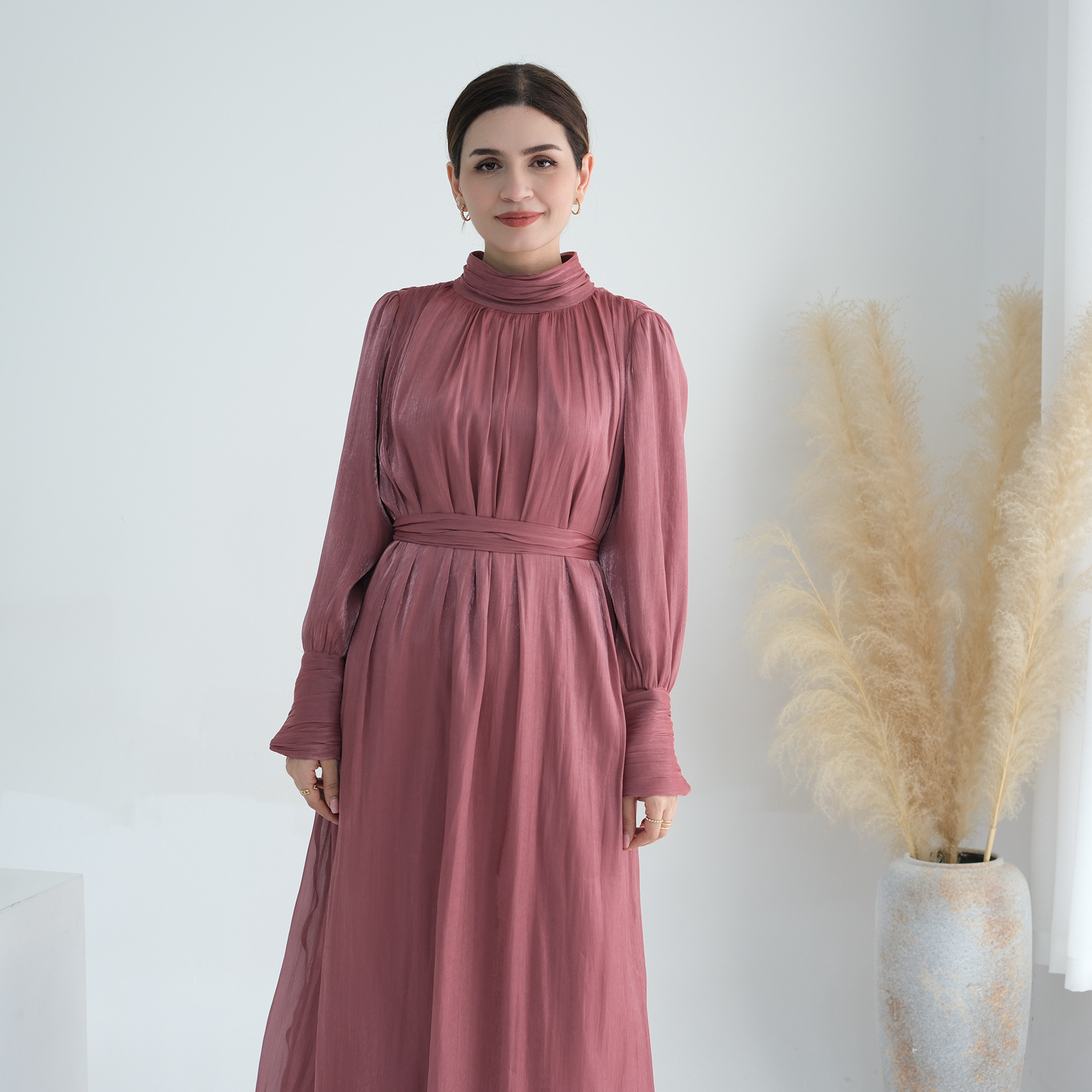 Turkey Dubai Exquisite Pure Color Tied Dress
